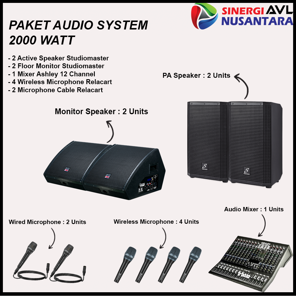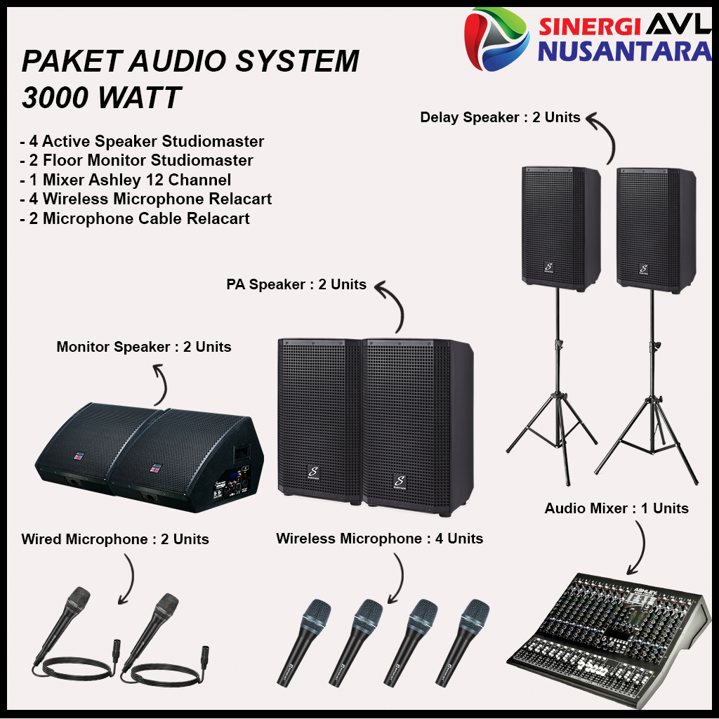 AVL Nusantara menghadirkan Jual, Rental, Service Sound System Profesional untuk berbagai kebutuhan acara, mulai dari konser, seminar, wedding, hingga corporate event. Didukung peralatan audio dari merk ternama dan teknisi berpengalaman, kami siap memberikan kualitas suara jernih dan maksimal. Layanan kami fleksibel, terpercaya, dan siap menjangkau berbagai kota. Percayakan kebutuhan audio event Anda pada AVL Nusantara!
